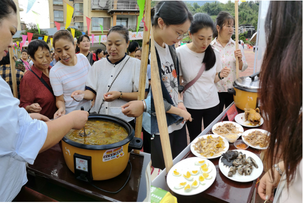为庆祝此次活动,贵州奇垦农业开发有限公司组织人员将“赤水乌骨鸡”、“赤水乌骨鸡蛋”、“水乡盐焗鸡”、“水乡椒麻鸡”等产品参加,同时为方便大家现场免费品鉴,公司还为现场观众准备了熬好的乌骨鸡汤、煮熟的乌骨鸡蛋、卤好的水乡盐焗鸡和水乡椒麻鸡,经过现场观众品鉴,一致点评乌骨鸡汤好喝,油而不腻,乌骨鸡蛋入口香软、Q弹,有淡淡清香味,水乡盐焗鸡味道咸香浓郁、皮脆肉滑、原汁原味,水乡椒麻鸡麻辣鲜香、口感层次分明。部分观众品尝上述产品后纷纷下单购买,现场公司人员忙得不亦乐乎。